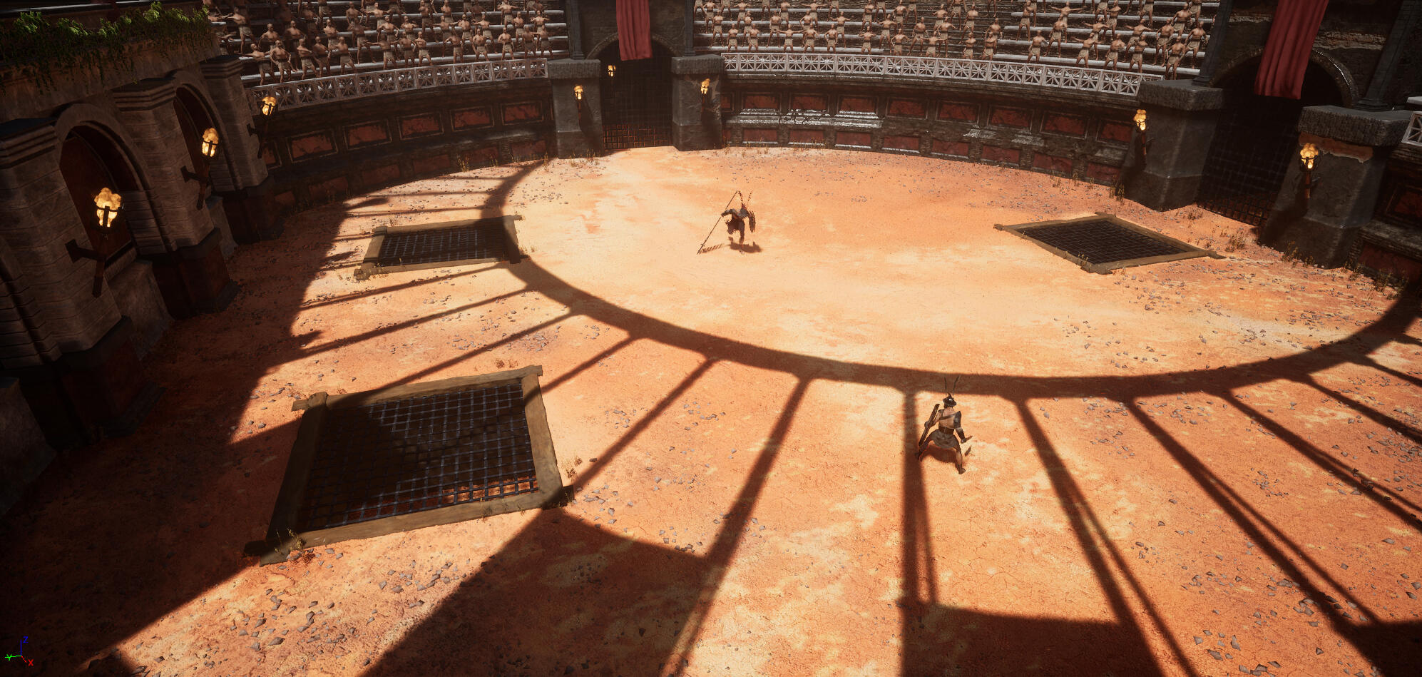 To make it as coherent as possible, we chose to recreate a fight in ancient Rome. After an initial introduction to the controls inside the gladiatorial school, the player is transported to an arena where he will fight against the emperor's champion.